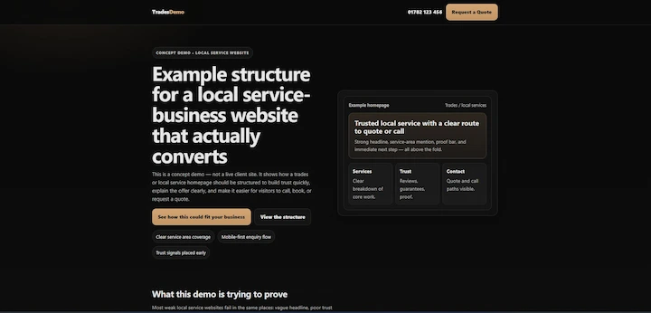 If your website is slow, unclear, dated, or weak on mobile, it is quietly costing trust before you ever speak to the customer. I build websites for Stoke-on-Trent service businesses that need a clearer offer, stronger trust signals, and a better route to calls, quotes, and enquiries.